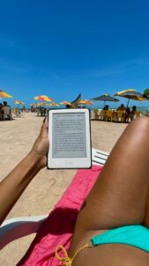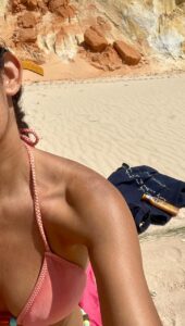 É perto, rápido de chegar e dá até para fazer bate e volta. Eu começo com um mergulho em frente à Freedom, porque o mar ali é tão gostoso que parece abraçar a gente. Depois, peço uma água de coco gelada, abro o Kindle e fico ali, existindo, sem culpa nenhuma. EU AMO FAZER ISSO.